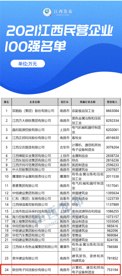 1213日,2021江西民营企业100强、2021江西制造业民营企业100强、2021江西服务业民营企业20强榜单发布,MG不朽情缘电子以强大的综合实力和稳健的发展态势,连续第九年荣登榜单其中,在江西民营企业100强中位列第24,较前一年位次前进3位,在江西制造业民营企业100强中位列第13位。